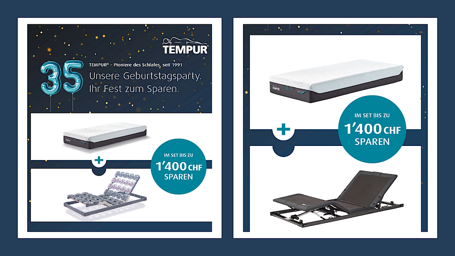 Beim Kauf einer TEMPUR PRO® Plus Matratze zusammen mit einem TEMPUR® Rahmen sparen Sie im Set bis zu 1.400 CHF auf die UVP des Rahmens.